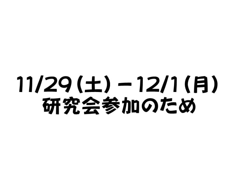 11月29日(土)から12月1日(月)の3日間は研究会参加のために休診とさせていただきます。 急な体調変化の場合には広島夜間病院等の受診をお願い致します。 ご迷惑おかけしますがご理解のほどよろしくお願 …